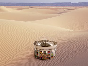 5. The object represents the material basis on earth and indicates the fundamental condition of the diversified existence, such as the colour circle in a palette of 18 colours that in relationship with matter and light acquire the qualities of translucency, opacity, transparency, iridescence and reflection. The 18 prisms correspond to 18 time zones of 15o that the sun covers daily and on a clock face to the time span of 0h to 9h, symbolic of the 9 months of the full cycle for the birth of the human being. These prisms are pillars that separate light into rainbows and change the colours seen through them mixed with the other colours of the reflection of the two-mirrored surfaces, and the colours they have as we move in all directions suggest the multiplicity of possibilities that colour and light provide in nature. What we see every time we shift point of view are fluctuating planes and fragments thrust on sets of surfaces that differ in material but have in common qualities that permeate multiple mutations of colours that in turn are fluid and mingle continuously. The ephemeral character of each viewing possibility is coupled by the top part of the object where the surfaces penetrable by light and sight work as pluridimensional membranes that dissolve and change with ethereal character. The object resonates two major breakthroughs in the history of light and colour. Newton's experimentum crucis where a ray of light passing through a prism is broken down into the colours and by reversing the prism, the dispersed light is recombined into white light demonstrating that white light is the result of the addition of all the colours of the spectrum. With these seven colours he created the first colour circle (Aureus, Flavus, Viridis, Caeruleus, Indicus, Violaceus and Rubeus). Looking through the same prism, Goethe revealed that colours (the "actions and passions of light") are seen wherever a variation of light and dark occurs giving rise to a boundary. In the object the prisms are also conceived as pillars that represent the sustained universal existence reflected on the mirrored surface of the calotte due to the genetic light (phôs ek photós) as a vault with wings irradiating from the centre cylinder: a thólos in praise of the divine light of creation and essence of beings and as a spaceship that with its movement involves us in temporal change and by tao- in the immobility of the eternal. | |